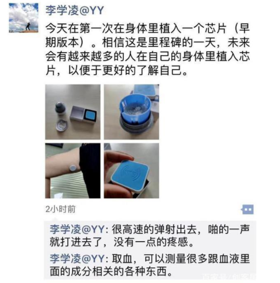 YY創始人李學淩自曝體內植入芯片,或將成為潮流?