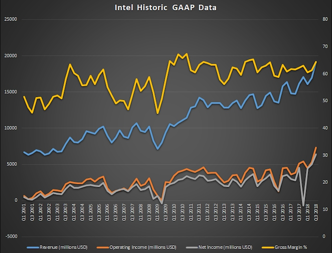 與此同時英特爾也發布了第三季財報,營收及每股收益超出市場預期,報告顯示,Intel第三季度營收為192億美元,同比19%;淨利潤為64億美元,與去年同期的45億美元相比增長42%,每股收益1.38美元,總營收創造下了曆史新高,每個業務領域都實現了增長,並在個人電腦業務、數據中心業務、物聯網集團、內存業務等四大業務取得創紀錄的季度營收,這意味著,今年全年或者明年上半年,英特爾在總營收上可能反超三星,奪回全球第一大芯片製造商的寶座。